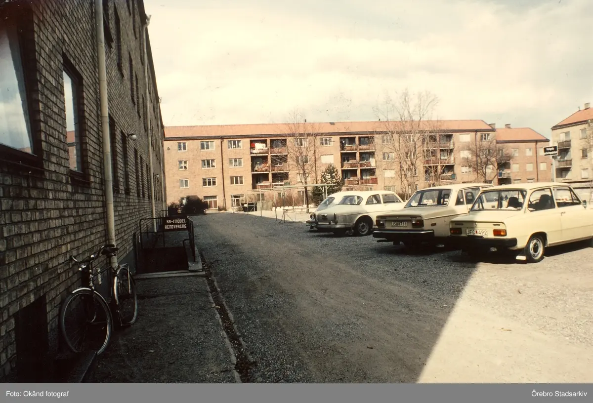 Parkering vid hyreshus på Lövstagatan - Västra Nobelgatan, 1982