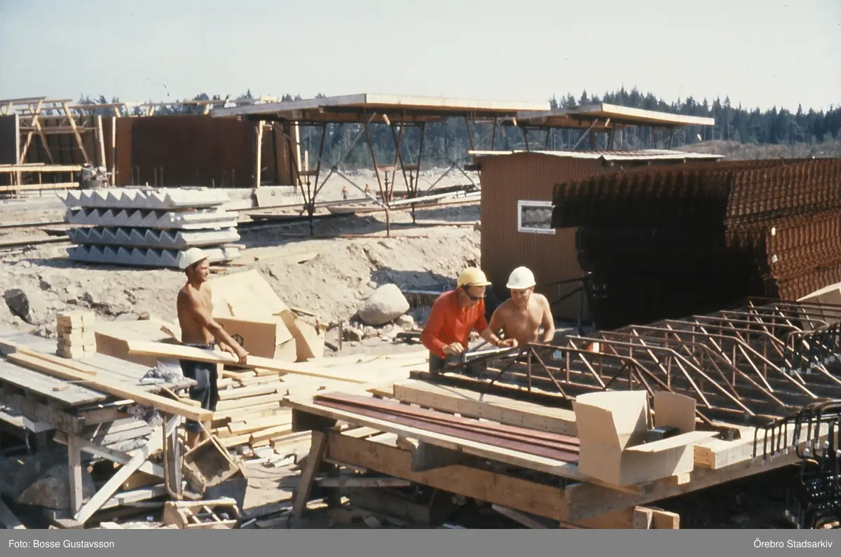 Arbetare vid byggnation av bostadsområdet Brickebacken, 1968