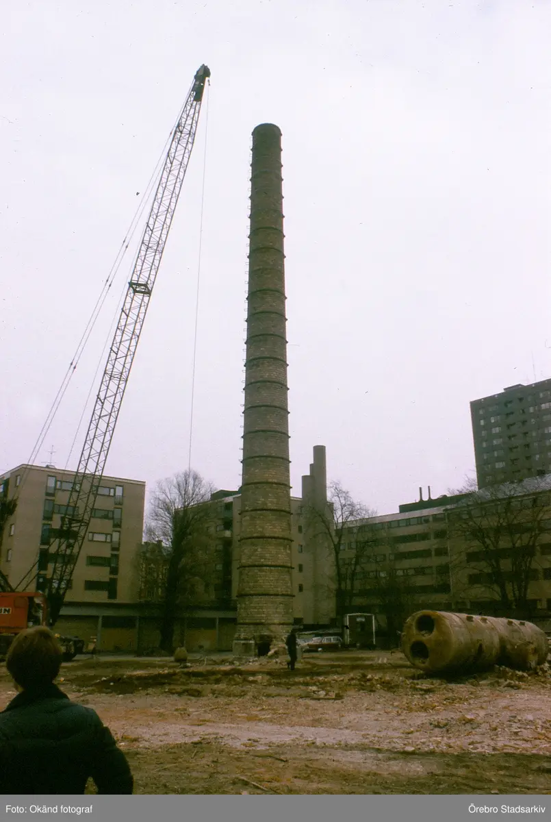 Skorstenen på Norlings bryggeri före rivning, 1970