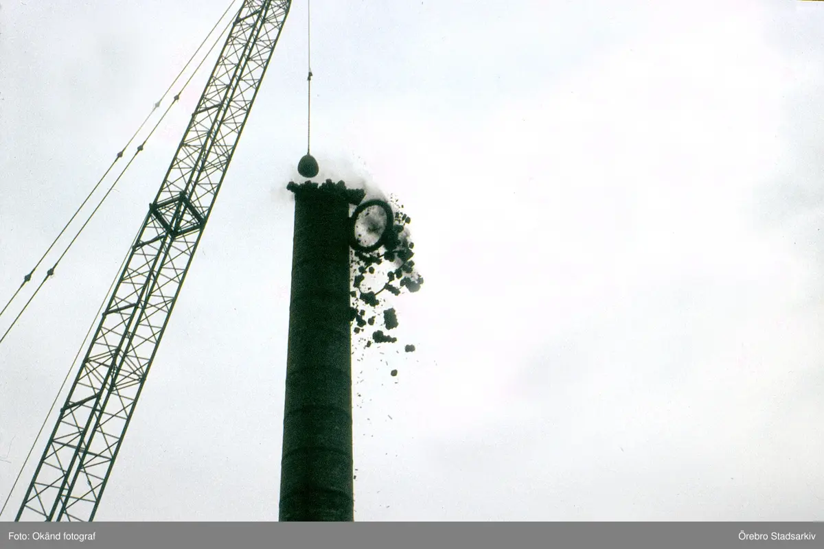 Stenarna rasar vid skorstenen vid Norlings bryggeri, 1970