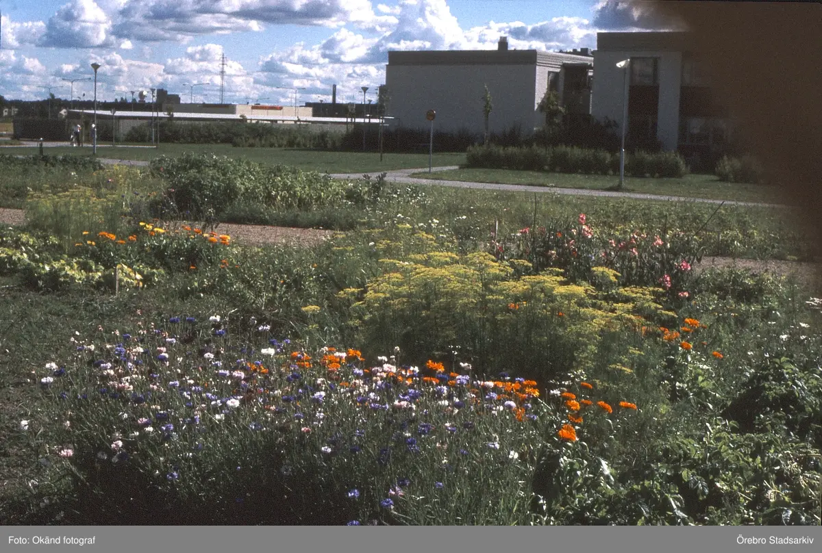 Blommor på koloniområde i Västhaga, 1970-tal