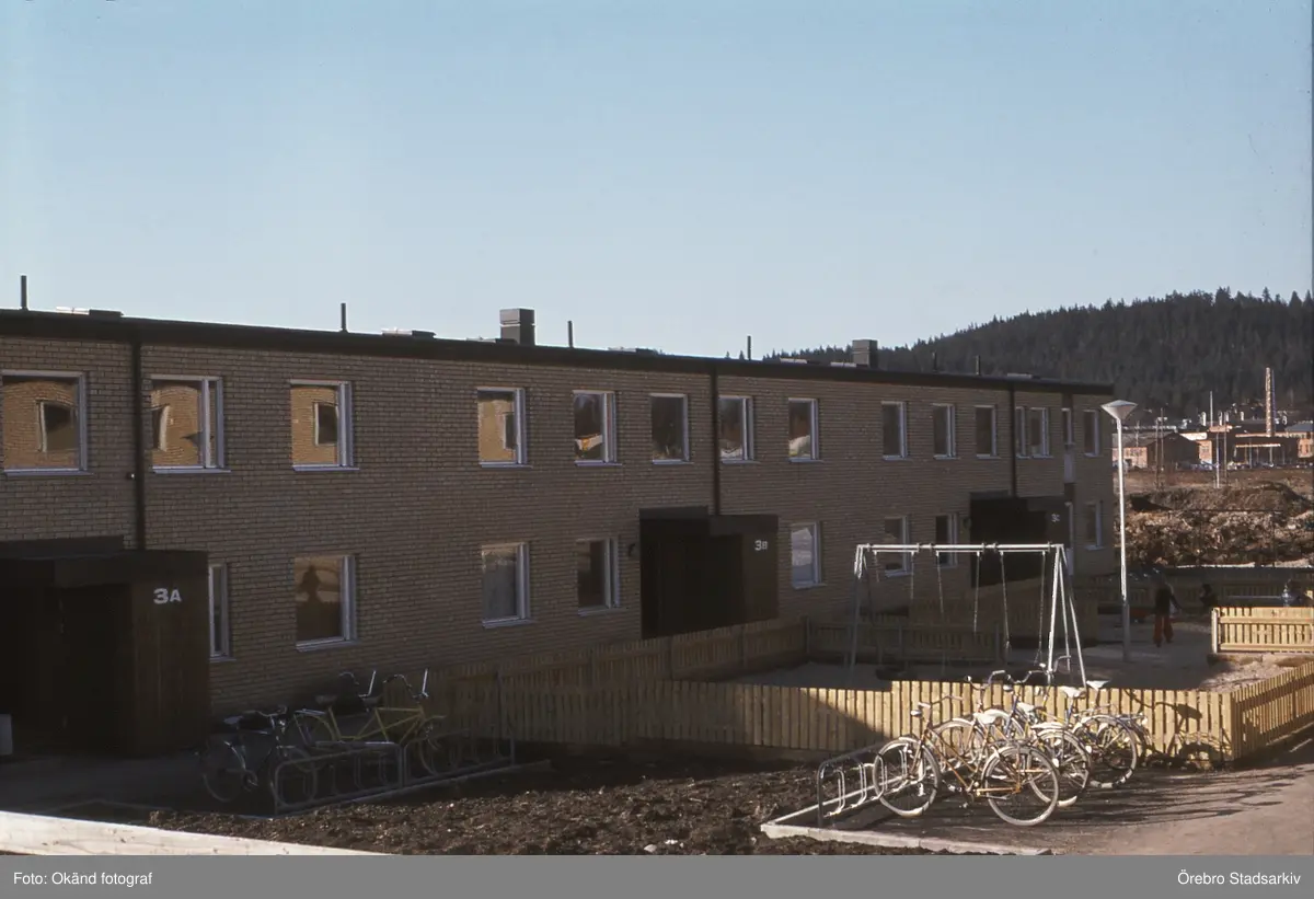 Cykelställ bland hyreshus i Garphyttan, 1970-tal