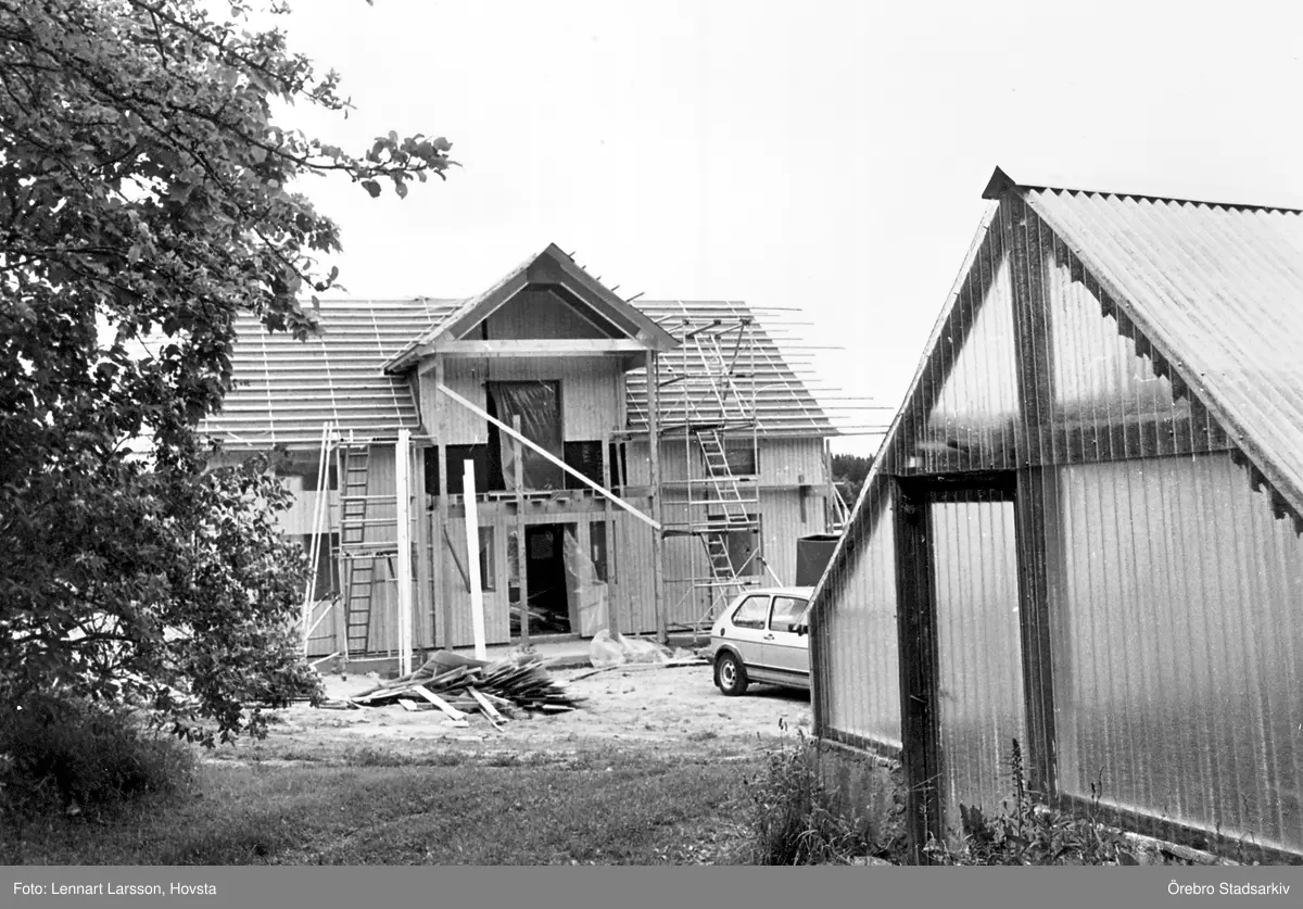 Det nybyggda huset i Yxyabacken i Hovsta väntar på sitt tegeltak, 1981