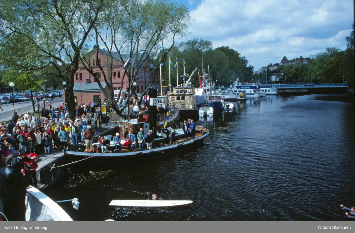 Vy över båtar och besökare i hamnen, båtens dag 1996