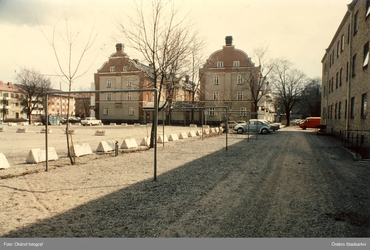 Vy över kvarteret Mållan söderut mot Markgatan, 1982