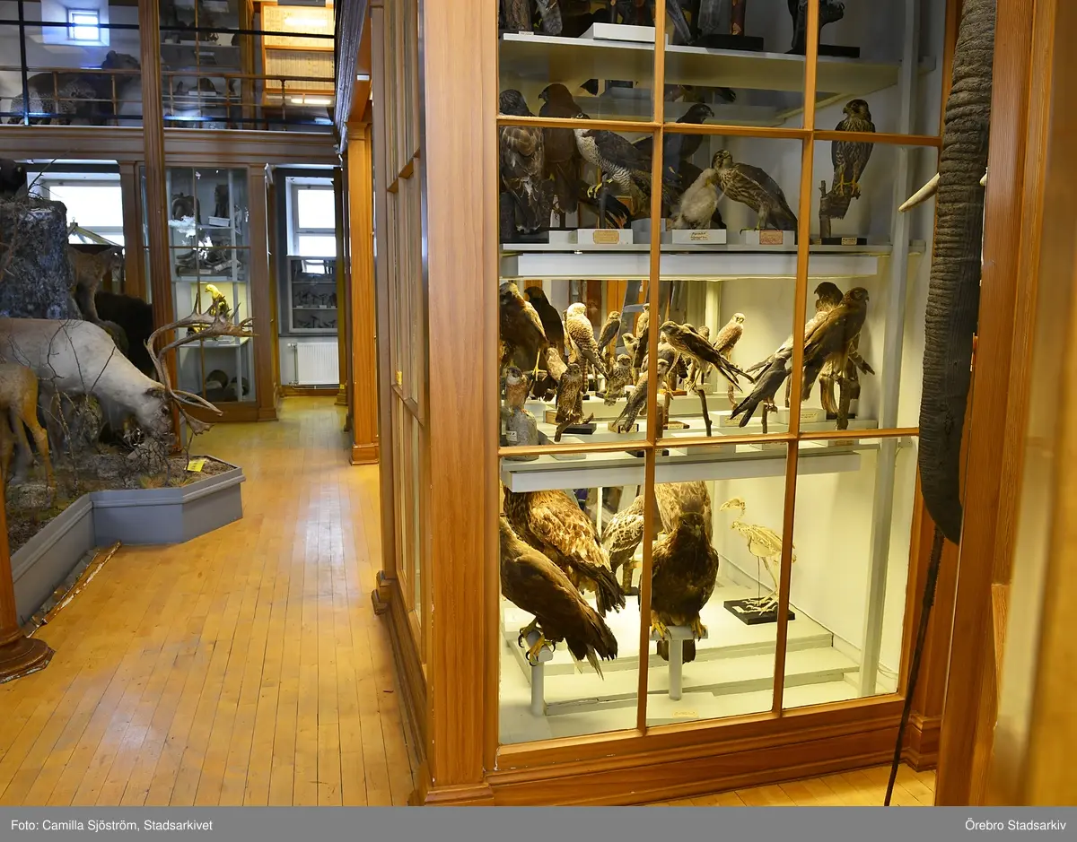Rovfåglar i monter på Biologiska museet, 2014-04-28