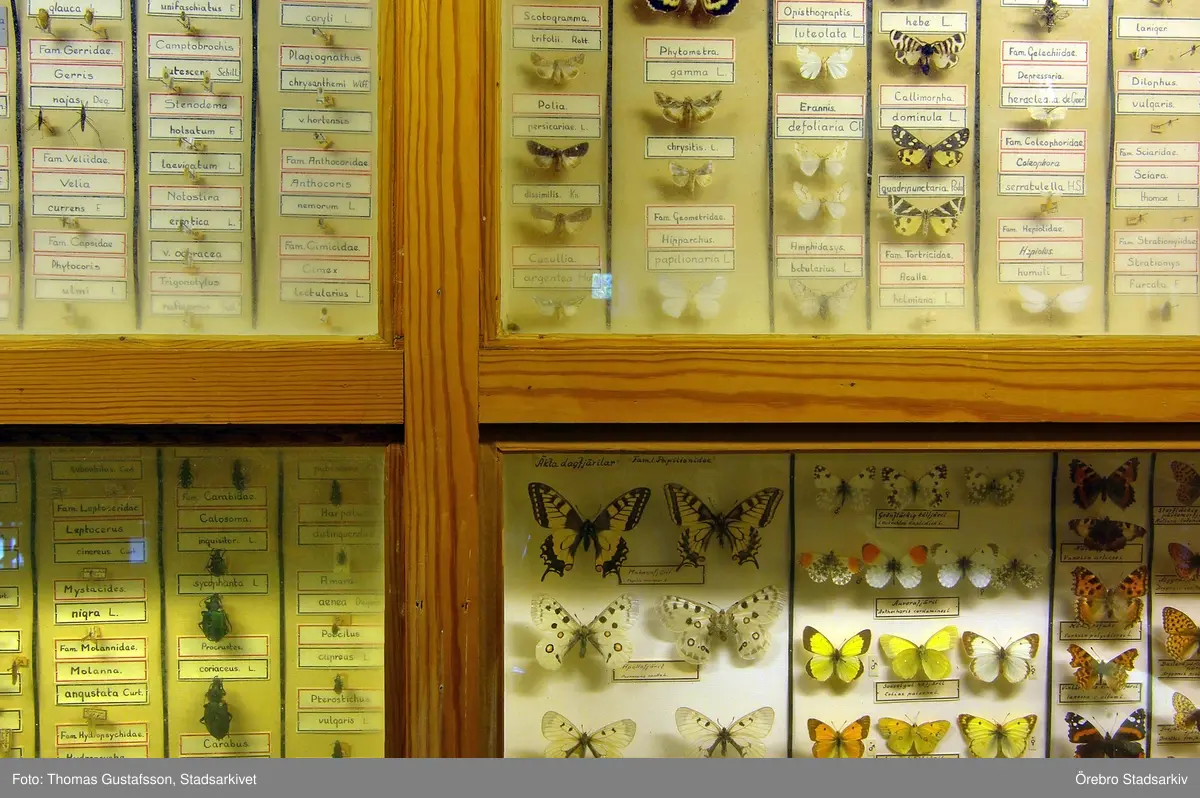 Fjärilar i monter på Biologiska museet, 2014-04-28