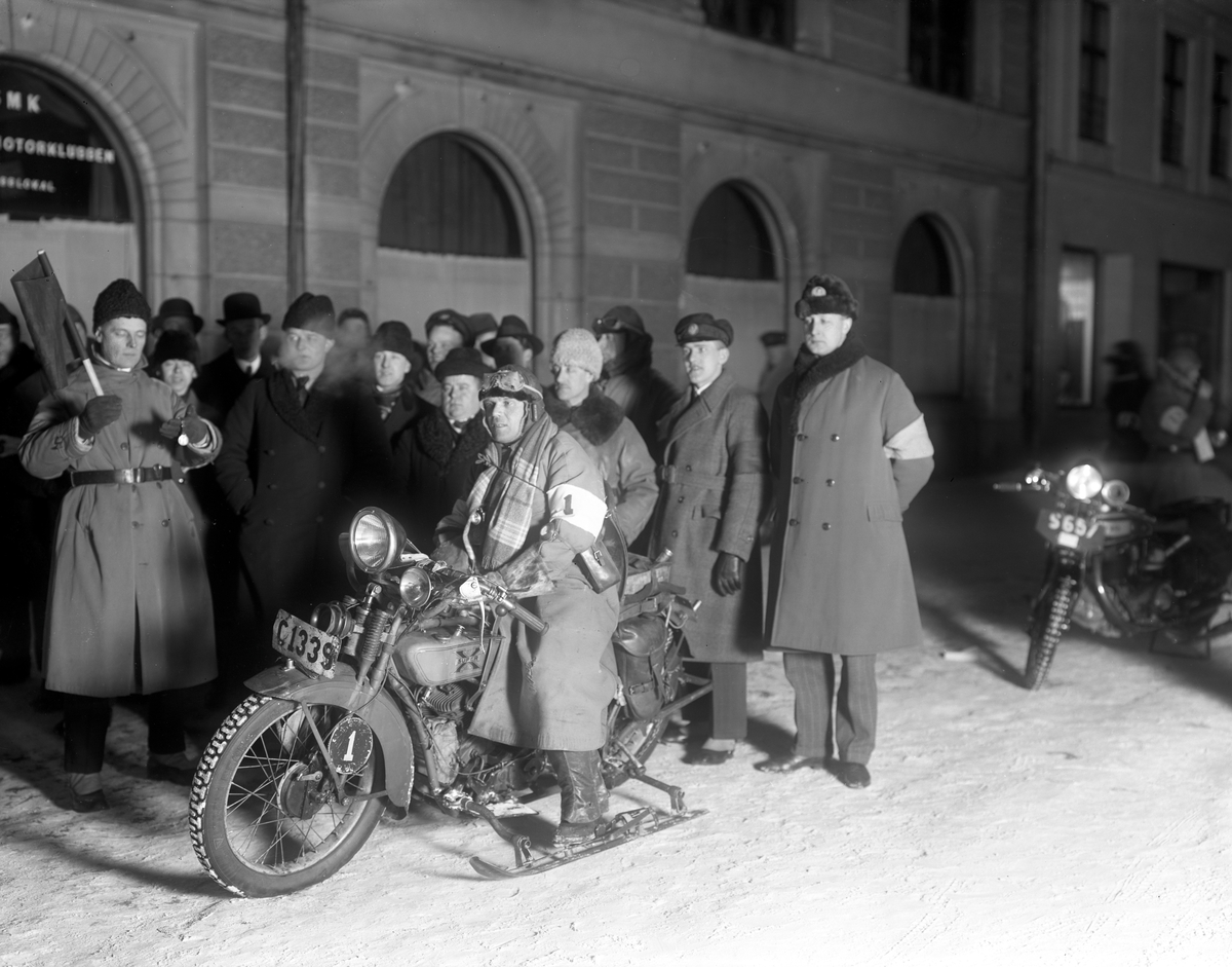 Svenska Motorklubben, med lokal i Grand Hotells fastighet, anordnar vintertävling för motorcyklar.
