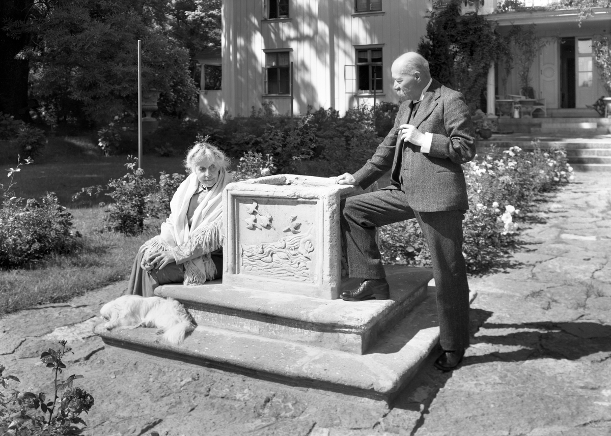 Lasarettets förre överläkare Per Clarholm med maka vid deras bostad, Alsters herrgård. Huset donerades till Värmlands läns landsting år 1942 och användes som konvalescenthem till 1970.