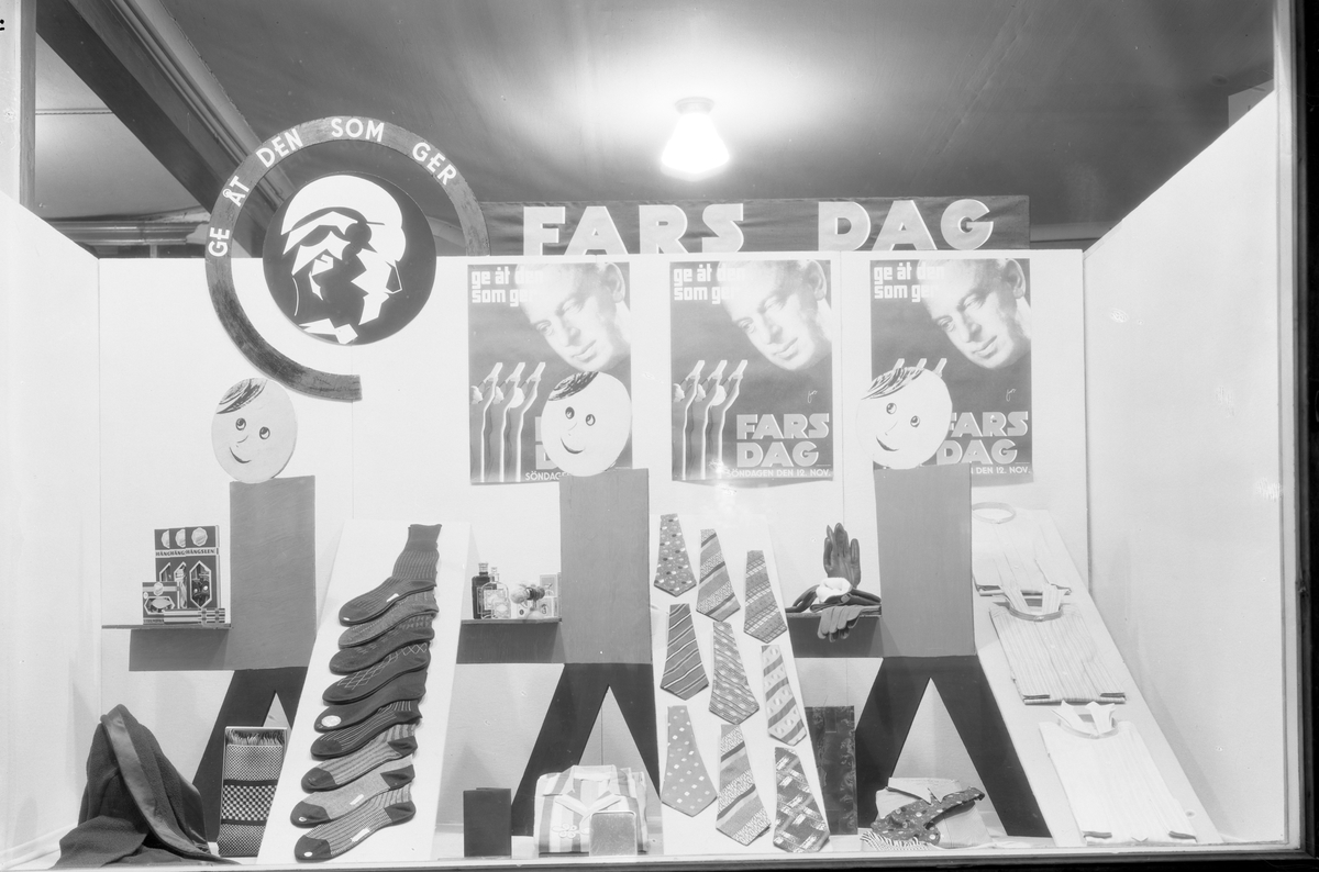 Den traditionella gåvan på Fars dag verkar inte ha förändrats särskilt mycket som det går att se i Varumagasinets skyltning år 1933.