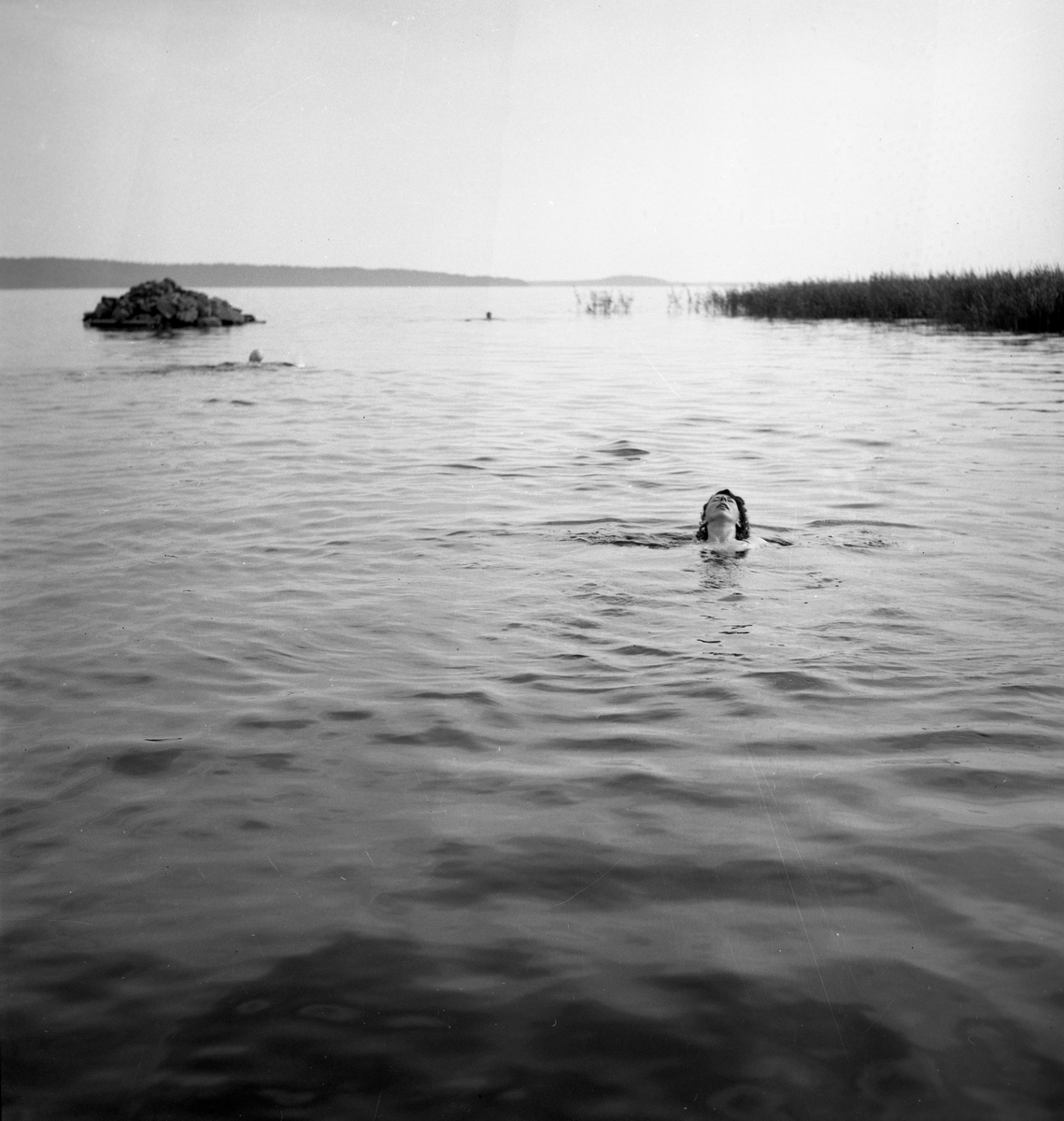 Titel: Sköna dagar på stranden, i Vänern eller vid tältet den sista sommaren före kriget, här Alsters strandbad.