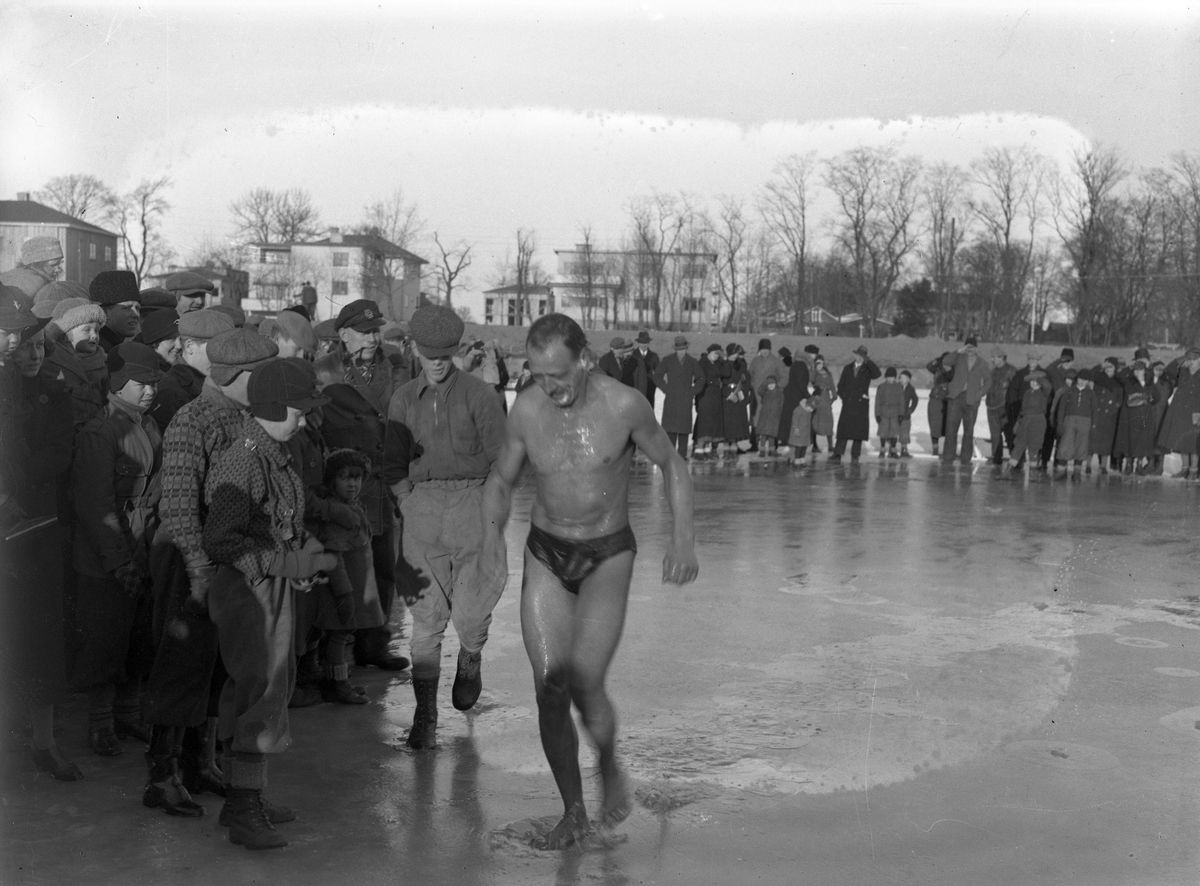 Text på negativkuvertet: Vinterbadaren från Örebro. En smärre sensation i Karlstad 1934.