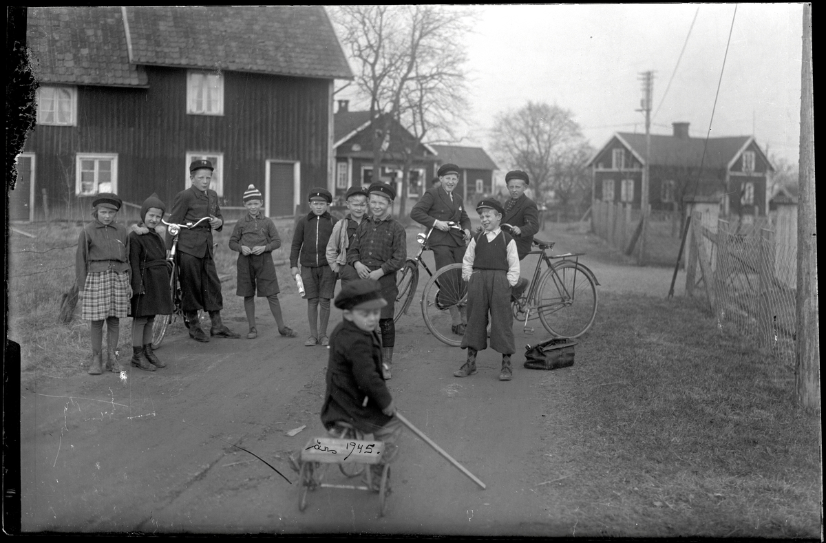 Lekande barn på vägen