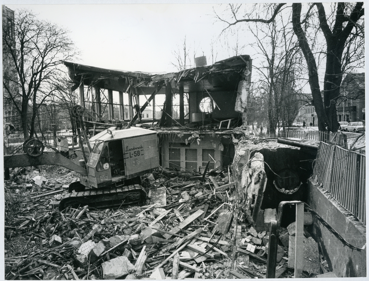Titel: Västerås. Rivning av Stadsparkens restaurang, 1971.