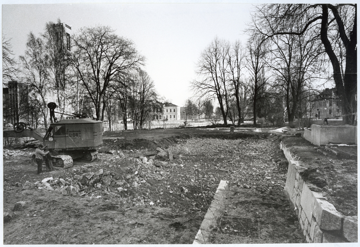 Titel: Västerås. Rivning av Stadsparkens restaurang, 1971.