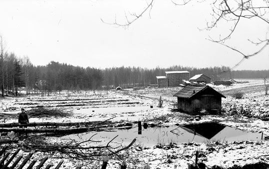 Fiskdammarna, med sågen i bakgrunden, i Naddebo.