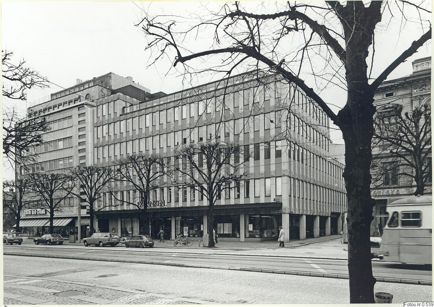 Västra Hamngatan, östra sidan med PK-banken och Vallgatan som går in till höger