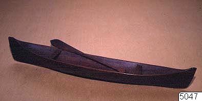 Modell av båt med två paddlar, använd i flod.