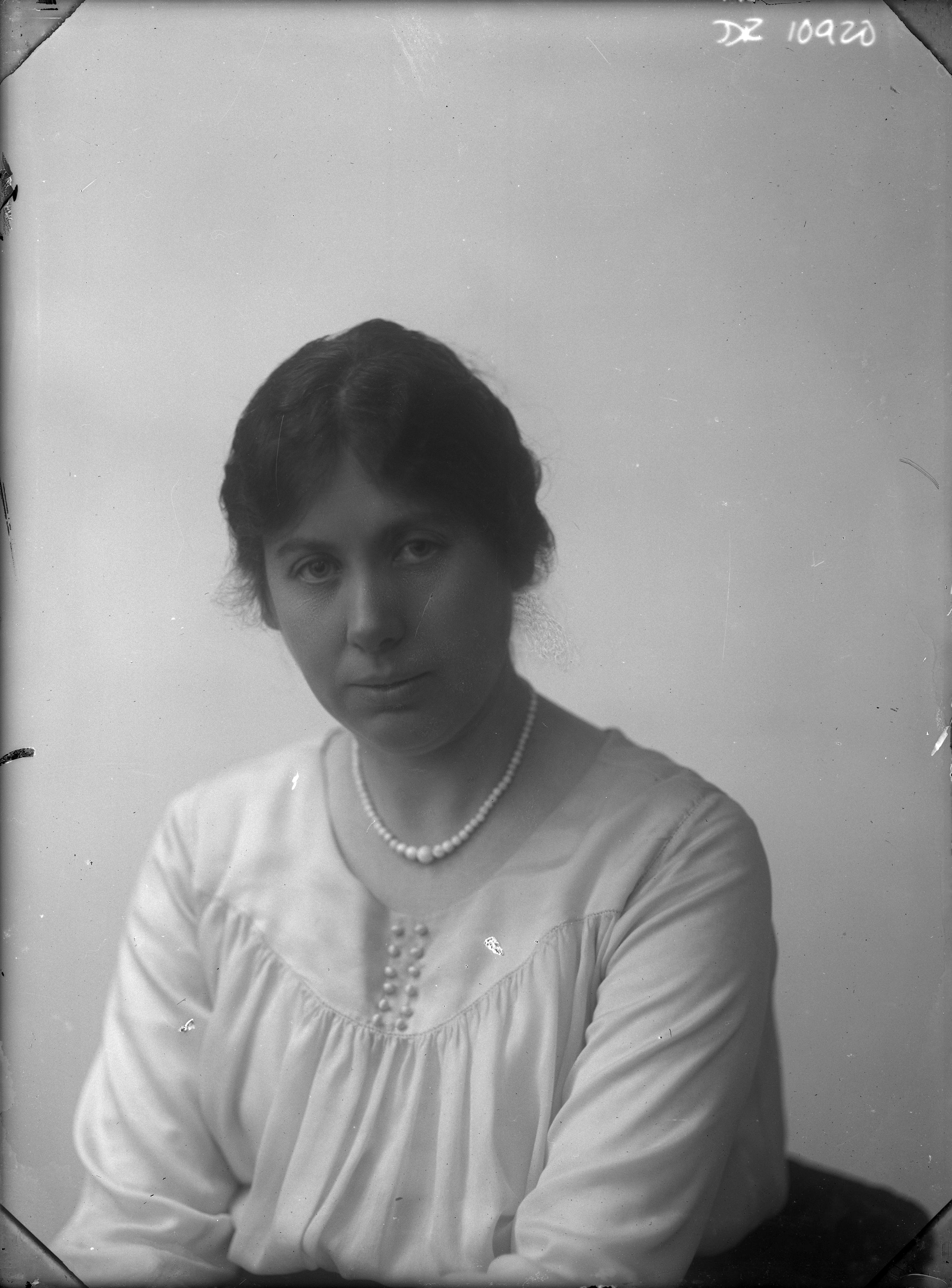 Beskrivning: Elsa Lindkörst (?) - kvinna halvfig.
