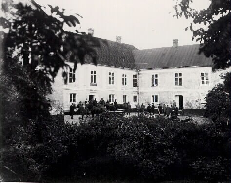 Troligen delar av familjen Carlheim-Gyllensköld utanför sitt gods, Vallens slott/säteri i Våxtorp. Byggnaden är vid fototiden ca 100 år; den uppfördes efter att den äldre brann ner år 1801. Byggherre var då hovjägmästare O W Burenskiöld. Delar av den medeltida borgen på platsen finns dock troligen kvar i bottenvåningen. Godset ligger på en holme i Vallsjön och med sitt läge i gränstrakterna Danmark-Sverige har många strider utkämpets här i raken. Vallen kom in i släkten Carlheim-Gyllenskiöld genom giftermål år 1830. Slottet med parkområde avstyckades 1939 från övriga markegendomar.