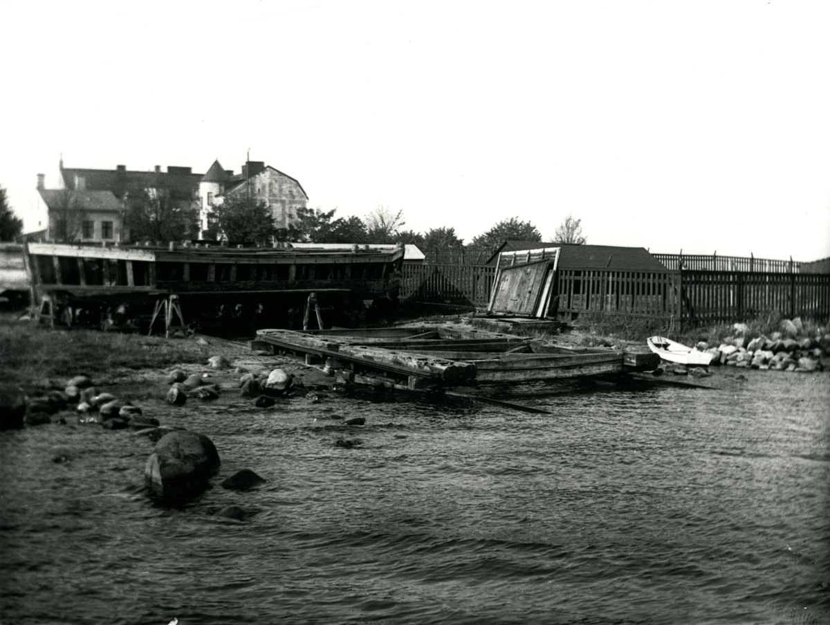 Pråmslipen. Upplagsplats för pråmar på Kattrumpan, bredvid klapphuset. Sett från sjösidan.