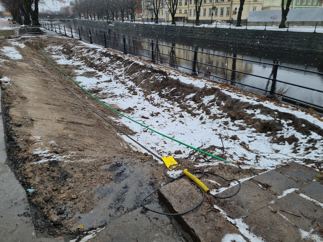 Det undersökta schaktet, som endast berörde tidigare omgrävda lager. Foto mot öster. Från arkeologisk undersökning i form schaktningsövervakning längs Norra Strandgatan, Gävle stad och kommun. L1951:5633.