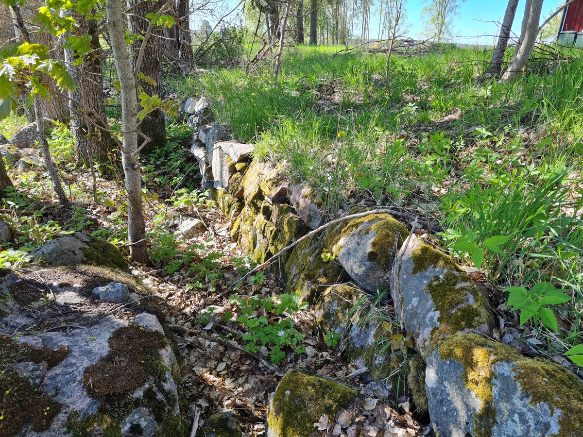 Terrassering L2022:9270, registrerad i samband med arkeologisk utredning år 2022. Foto från nordöst. Från arkeologisk utredning vid Alborgen, Valbo socken, Gävle kommun.