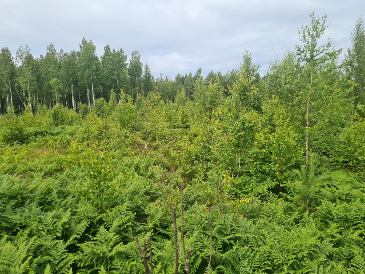 Översiktsbild över undersökningsområdet, fotat mot väster vid platsbesök i juli 2022. Från arkeologisk förundersökning i Norra Åbyggeby i Hille socken, Gävle kommun. L1948:7210, L1951:3532, L2023:398, L2023:400 & L2023:401.