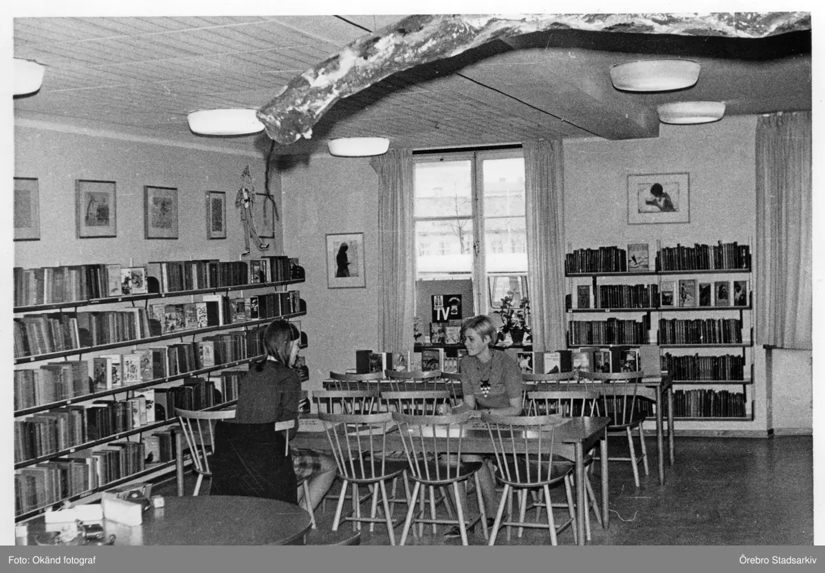 Skyltmålning på ungdomsavdelningen på Örebro Stadsbibliotek på Fabriksgatan, 1969