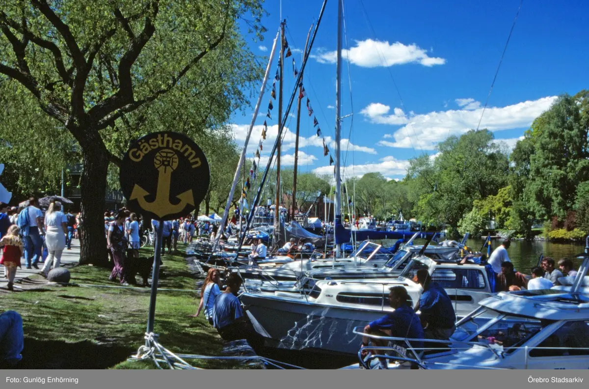 Vy över båtar och besökare i gästhamnen, båtens dag 1997