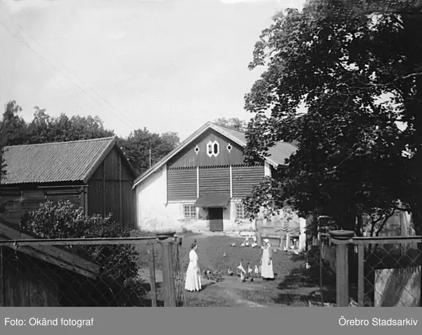 Kvinnor matar höns på gård i Ramsberg, 1920-tal