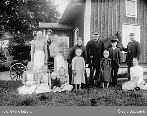 Familj framför hus i Ramsberg, 1920-tal