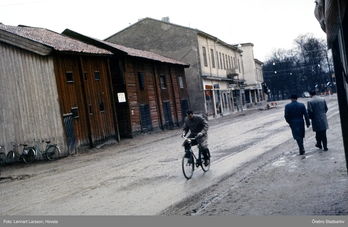 Man med cykel på Engelbrektsgatan, 1960-tal