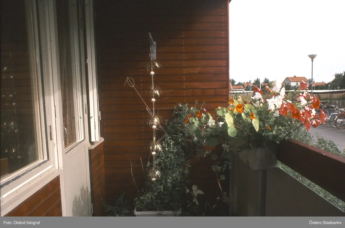 Balkong med blommor på Skäpplandsgatan i Västhaga, 1970