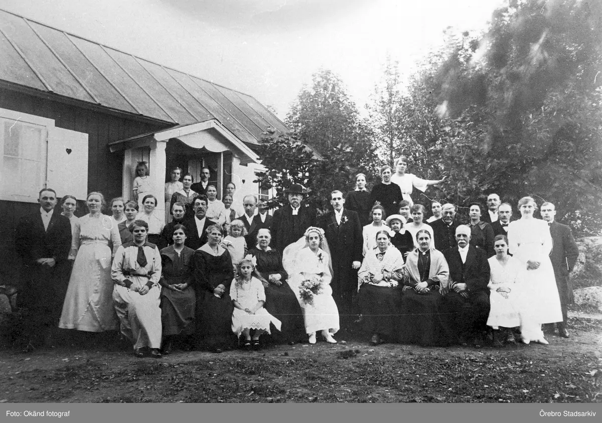 Brudpar med gäster i Lillån i Hovsta, ca 1925