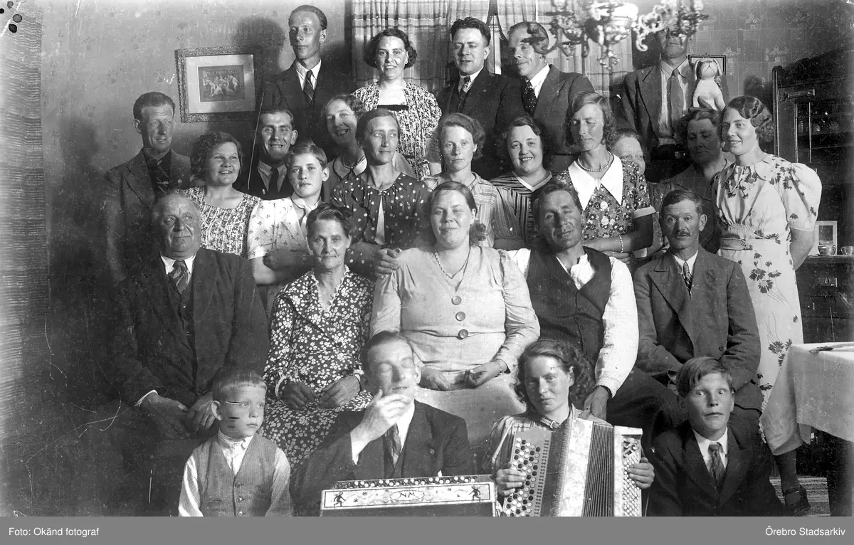 Festdeltagare på Storgården i Kårsta i Hovsta, 1940-tal