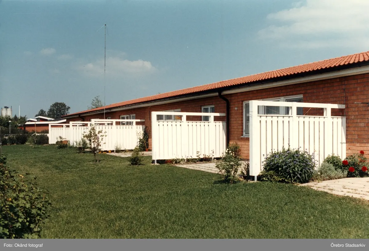 Uteplatser vid radhus på Midgårdsvägen i Odensbacken, 1970-tal
