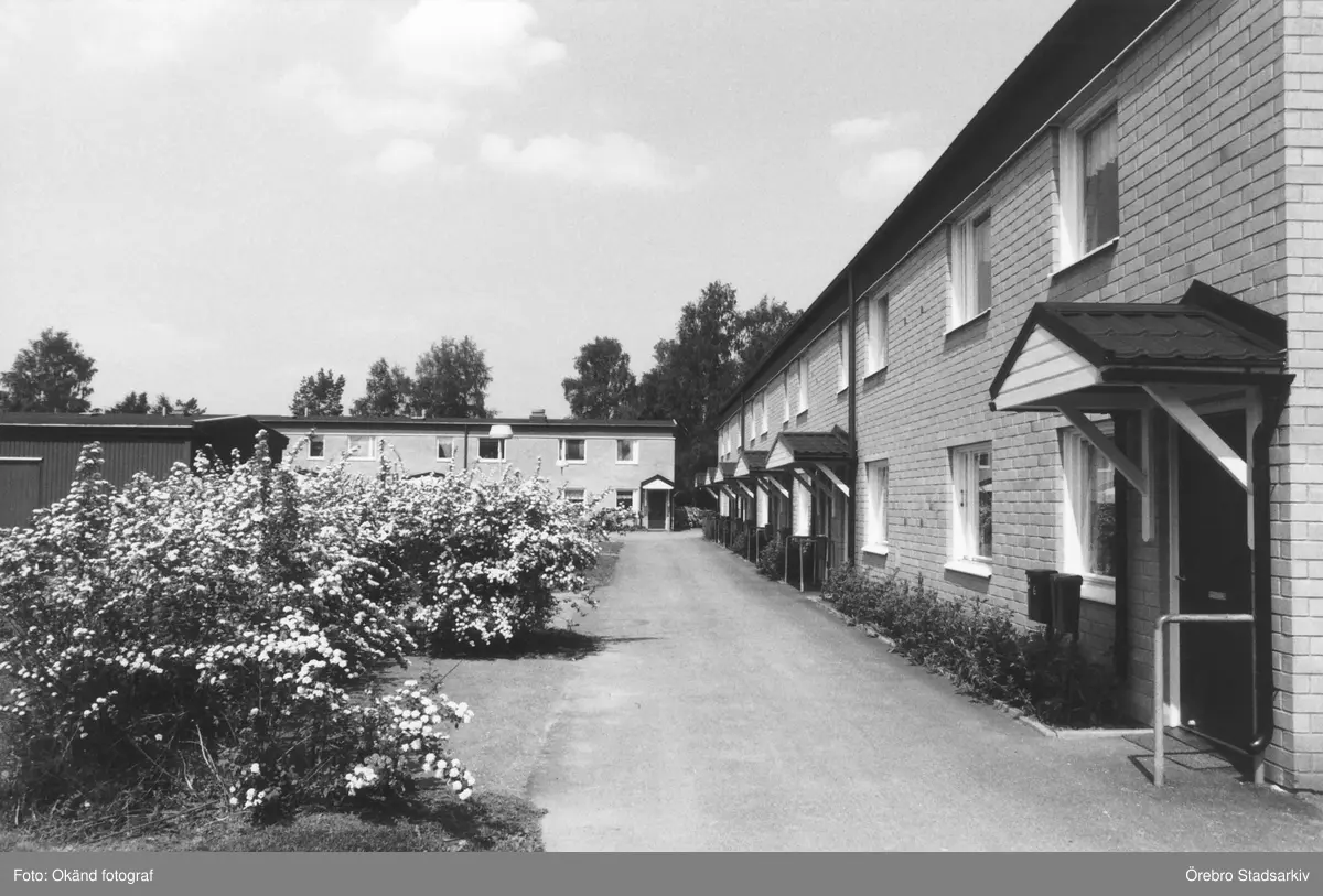 Radhus med blommande buskar i Odensbacken, 1970-tal