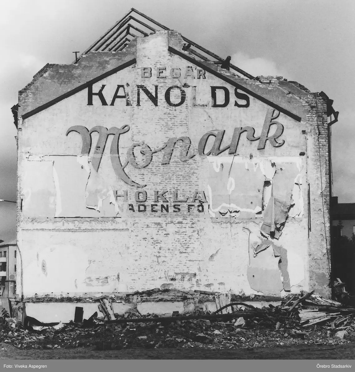 Reklam på rivningshus på Västra Nobelgatan, 1970-tal