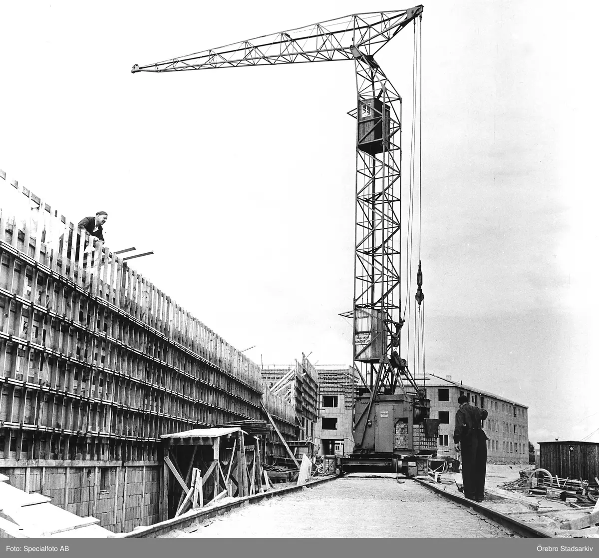 Byggkran vid byggandet av bostadsområdet Baronbackarna, 1954