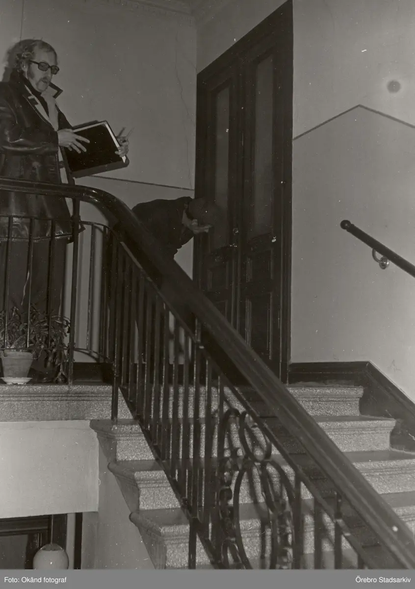 Inspektion i trapphus med höga pardörrar på Hertig Karls allé 10, 1970-tal