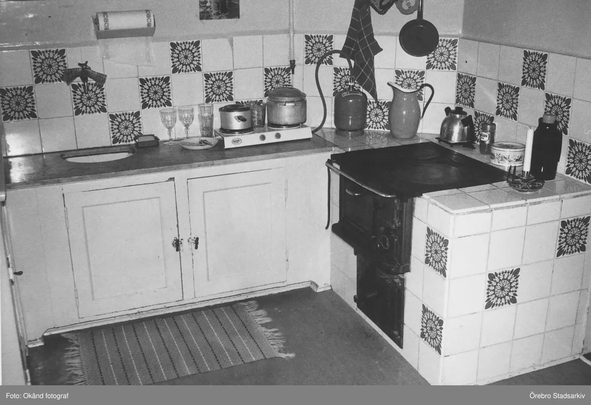 Kök med både vedspis och bänkspis på Lindrothsgatan 20, 1970-tal