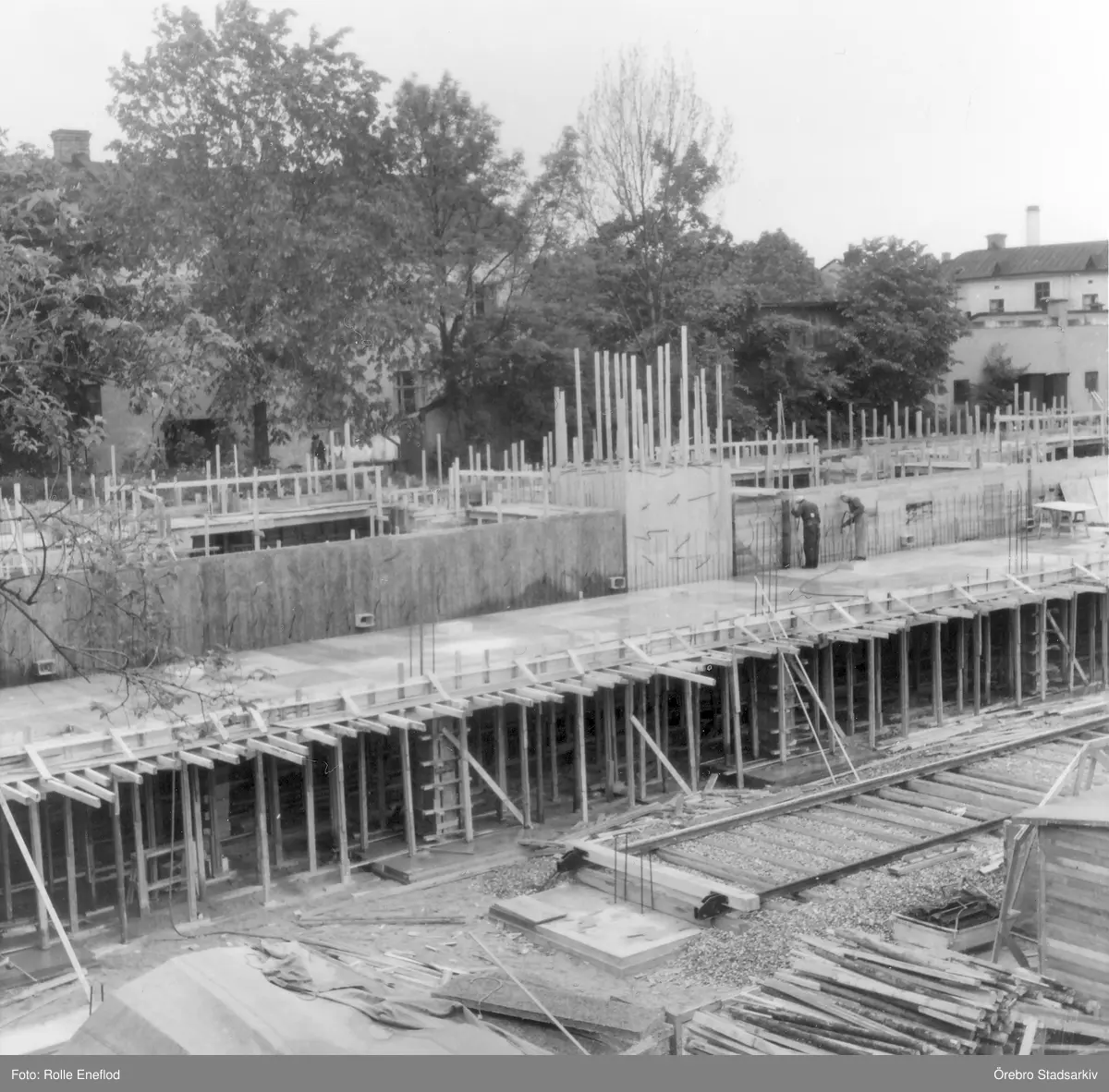Grundläggning för källare i hus A i kvarteret Tunnbindaren, 1959