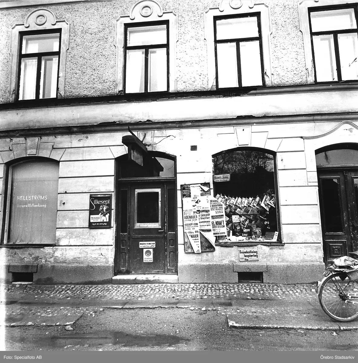 Entré till Elna Nilssons tobaksaffär och Hellströms karamelltilverkning på Kyrkogårdsgatan 16, 1959-04-10