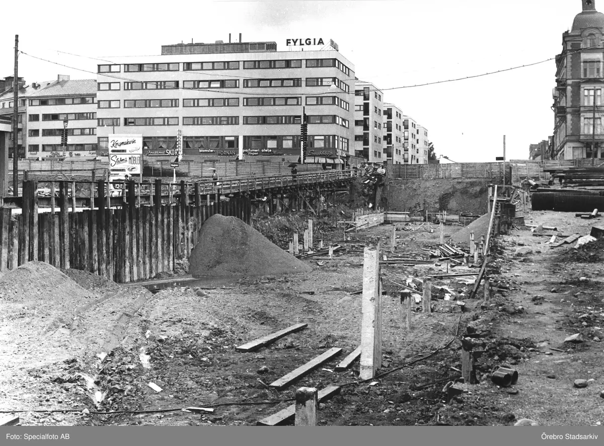 Grävd grop vid byggnation av Rudbeckstunneln, 1960-06-16