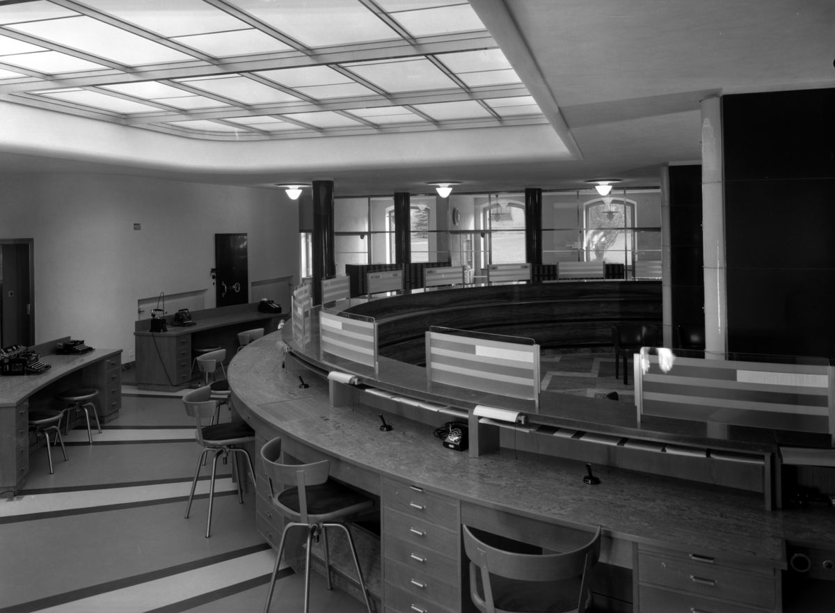 Bildsvit från Karlstads Sparbanks om- och nybyggda lokaler som invigdes år 1936.