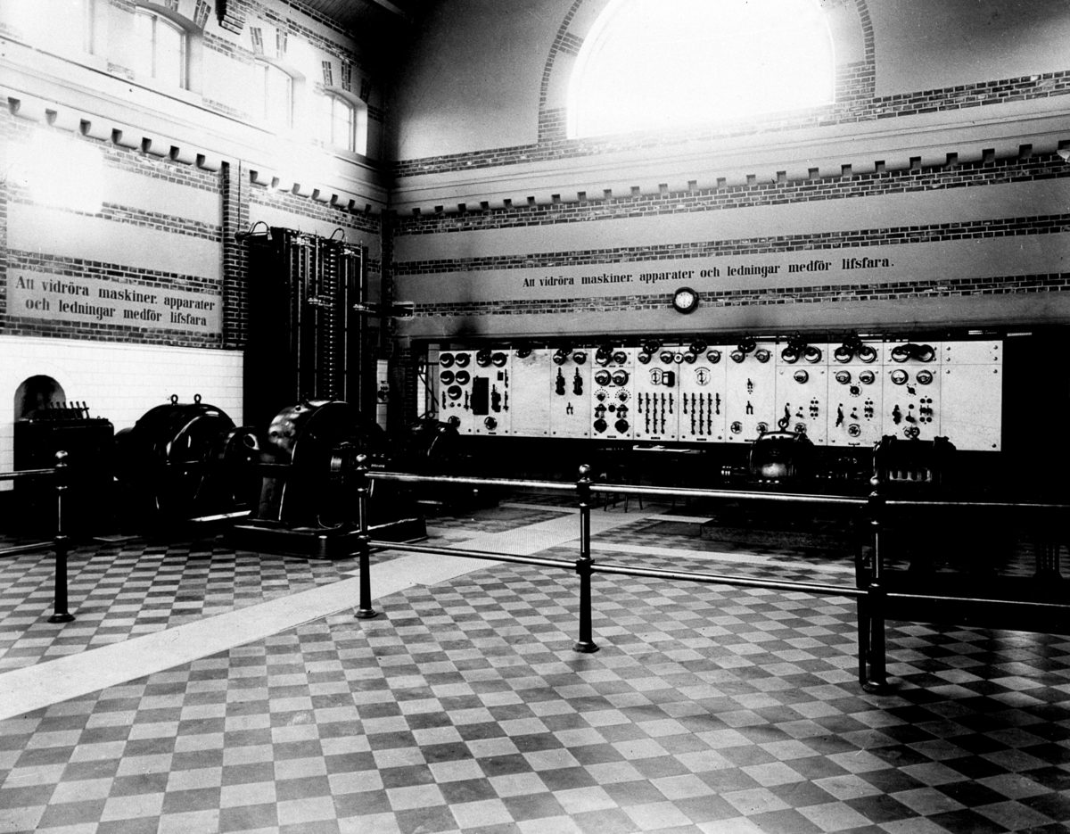 Interiör från elverkets omformarstation vid Eneströmsgatan mellan fängelset och järnvägen.