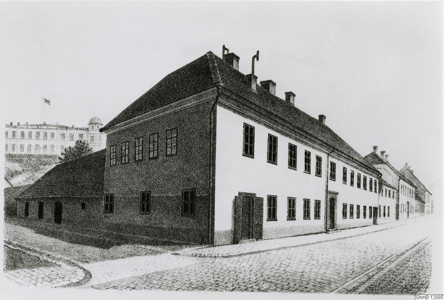 Äldre Sahlgrenska sjukhuset vid dåvarande Sillgatan, blick österut. På Kvarnberget syns Navigationsskolan.