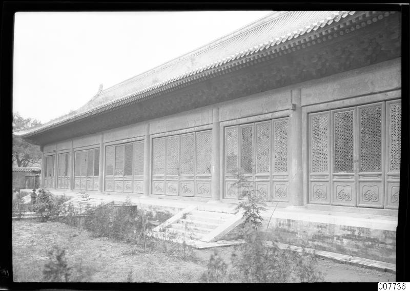 En byggnad sedd från sidan med många dörrar, alla är stängda. En liten trappa leder upp till byggnaden.