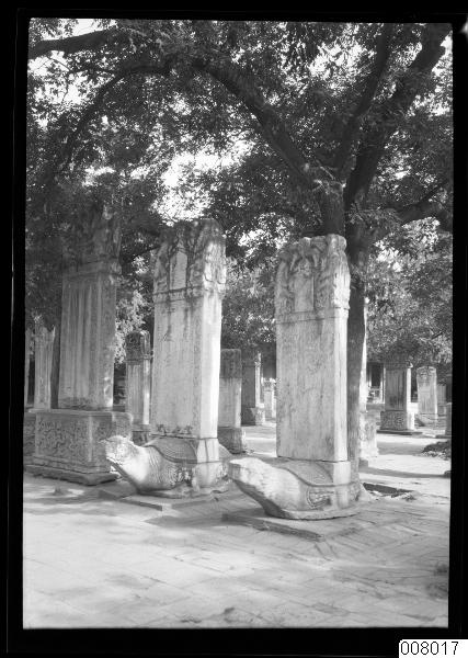 Två Bixi, som är en av drakens nio söner, bärandes minnestavla.